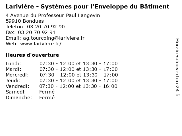| Lundi | 07:30-12:00 et 13:30-17:00 |
