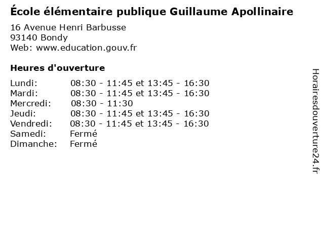 | Mardi | 08:30-11:45 et 13:45-16:30 |