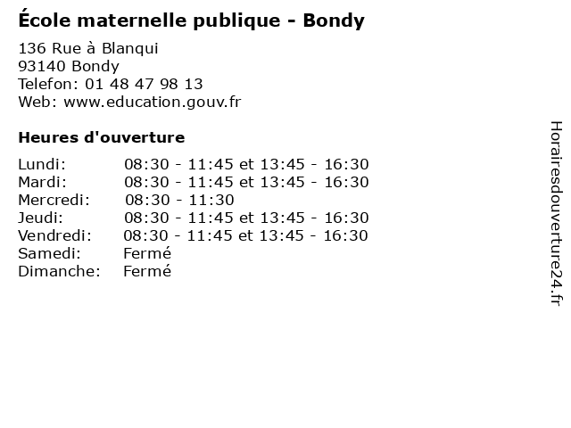 1 École maternelle publique - Bondy (Distance: 1,85 km) 34 Avenue J Moulin, 93140 Bondy bondy, ecole, education, maternelle, publique, services, école 2 Ecole Maternelle Publique - Montreuil-Bellay (Distance: 0,21 km) 289 Rue de l'école Quartier de Méron, 49260 Montreuil-Bellay bellay, cours, ecole, maternelle, montreuil, publique, services 3 École primaire publique - Bondy (Distance: 0,95 km) 31 Rue G Elie, 93140 Bondy bondy, ecole, education, maternelle, primaire, publique, services, école 4 École maternelle publique Alain Savary (Distance: 1,16 km) 21 Rue du Vieux Moulin, 93140 Bondy alain, cours, education, maternelle, publique, savary, services, École, école 5 École primaire publique - Bondy (Distance: 1,17 km) 21 Rue du Vieux Moulin, 93140 Bondy bondy, ecole, education, maternelle, primaire, publique, services, école 6 Ecole Maternelle Publique-Les Pavillons-sous-Bois (Distance: 1,25 km) 3 Avenue Geoges, 93320 Les Pavillons-sous-Bois bois, cours, ecole, les, maternelle, pavillons, publique, services, sous |