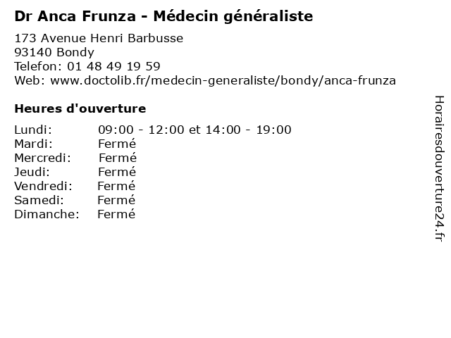 | Lundi | 09:00-12:00 et 14:00-19:00 |