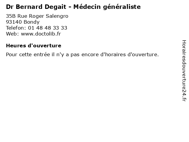 | Appeler Dr Bernard Degait - Médecin généraliste | |