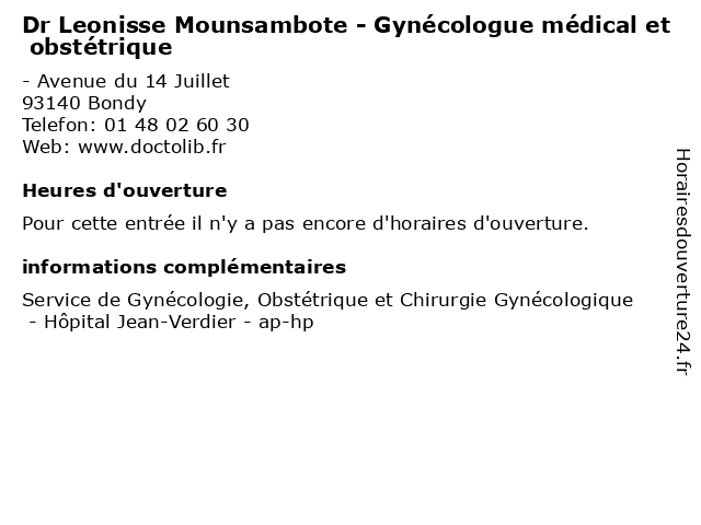 | Appeler Dr Leonisse Mounsambote - Gynécologue médical et obstétrique | |