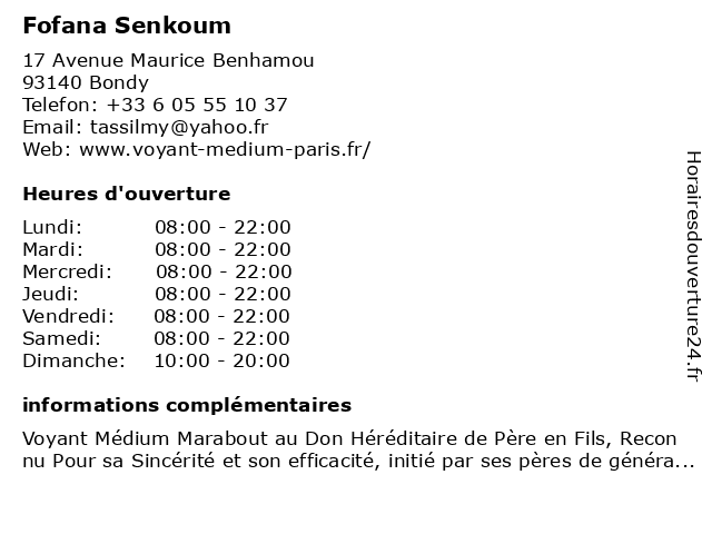 1 Fofana Médium voyant île de France (Distance: 0,00 km) 17 Avenue Maurice Benhamou, 93140 Bondy de, fofana, france, médium, voyant, île 2 Aissatou Fofana - Infirmière (Distance: 9,78 km) 22 Rue Myrha, 75018 Paris aissatou, fofana, infirmerie, infirmière, médecine, soins 3 Fofana Adama (Distance: 10,21 km) 135 Avenue Lenine, 93380 Pierrefitte Sur Seine adama, fofana, restaurants 4 Fofana Mamadou (Distance: 10,44 km) 14 Rue Alcide d Orbigny, 93380 Pierrefitte Sur Seine fofana, mamadou, restaurants 6 |