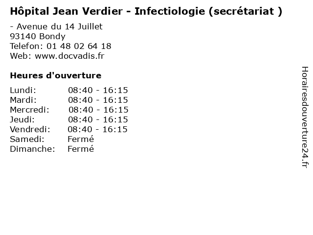 Termes de recherche pour Hôpital Jean Verdier - Infectiologie (secrétariat ):jean, hopital, santé, verdier, secretariat, docteur, consultation, infectiologie |