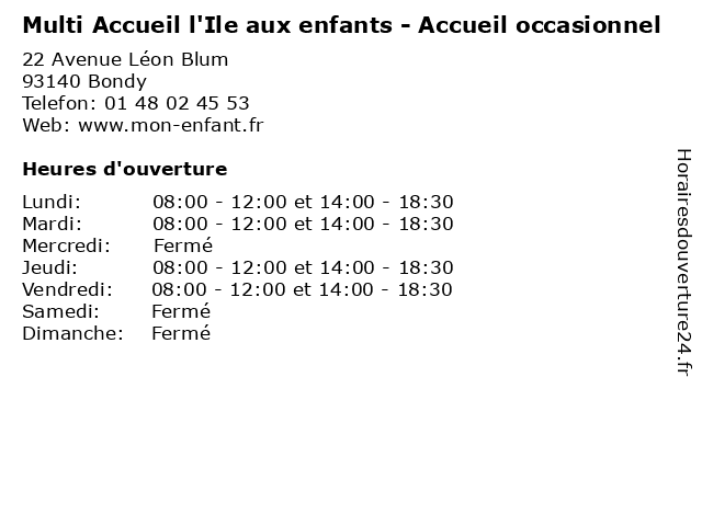 | Mardi | 08:00-12:00 et 14:00-18:30 |