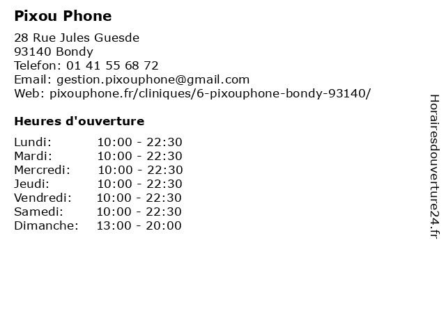1 Pixou Phone (Distance: 9,02 km) 132 Avenue du Général de Gaulle, 94500 Champigny sur Marne accessoires, boutiques, phone, pixou, réparation, téléphonie 2 Pixou Phone (Distance: 10,78 km) 82 Rue Vauvenargues, 75018 Paris accessoires, boutiques, phone, pixou, réparation, téléphonie 3 Pixou Phone (Distance: 11,28 km) 48 Rue d'Amsterdam, 75009 Paris accessoires, boutiques, phone, pixou, réparation, téléphonie 4 Pixou Phone (Distance: 12,98 km) 14 Avenue de Fontainebleau, 94270 Le Kremlin-Bicêtre accessoires, boutiques, phone, pixou, réparation, téléphonie 5 Phone House (Distance: 5,54 km) . Avenue du Maréchal Joffre, 94124 Fontenay sous Bois beaute, boutiques, chaussures, deco, enfants, house, mode femme, mode hommes, phone, restaurant, sport 6 Relais Colis® / MONDIALE PHONE (Distance: 10,36 km) 32 RUE DES ROSIERS, 93400 ST OUEN colis, colis®, mondiale, phone, relais, services postaux et de livraison |