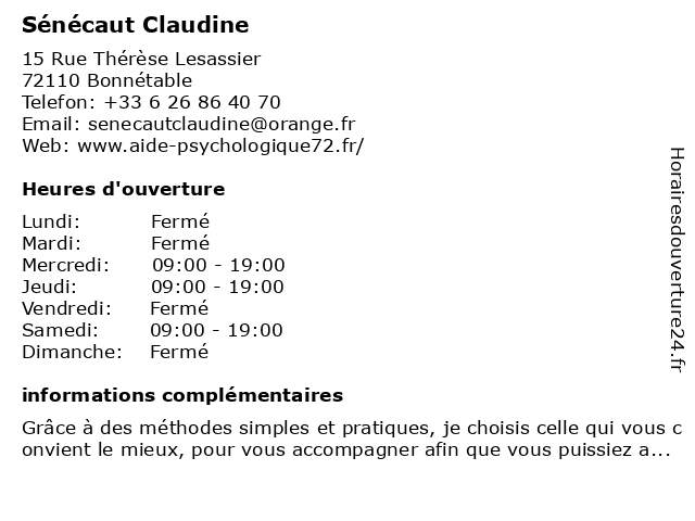 1 Dr Claudine Ligne - Psychiatre (Distance: 25,78 km) 7 Avenue François Mitterrand, 72000 Le Mans claudine, dr, folie, ligne, psychiatre, psychiatrie, psychiatrique 3 Claudine Picouleau - Sage-femme (Distance: 26,00 km) 194 avenue Rubillard, 72100 Le Mans claudine, consultation, docteur, femme, med, medecine, medical, médecin, picouleau, sage, traitement 4 Les 7 Saveurs (Distance: 27,20 km) 5 Place Raphael Elize, 72000 Le Mans blot, bornet, claudine, monique, restaurants, saveurs |