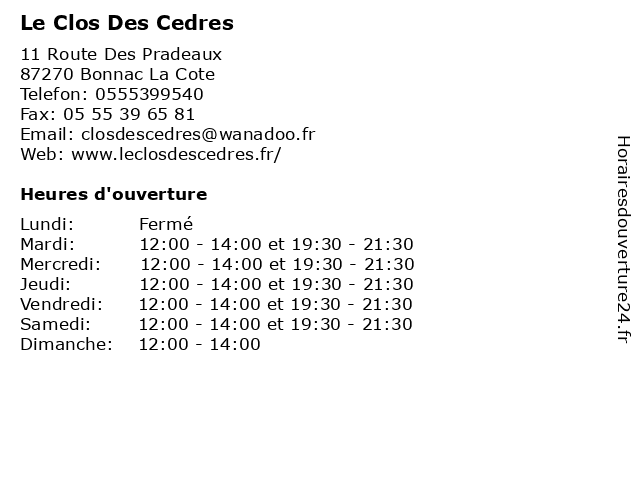 | Lundi | Fermé |