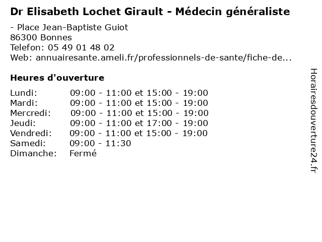| Lundi | 09:00-11:00 et 15:00-19:00 |