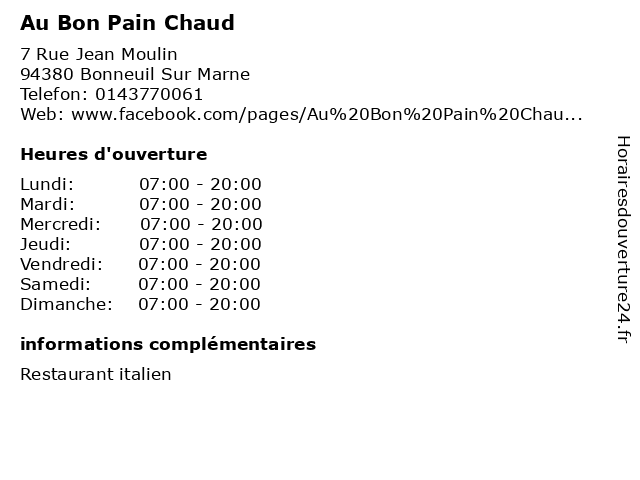 1 Au Bon Pain Chaud (Distance: 18,40 km) 27 Avenue Jean Jaures, 93120 La Courneuve bon, boulangeries, chaud, détail, pain 2 Boulangerie Le Point Chaud (Distance: 2,40 km) 3 Boulevard de la Gare, 94470 Boissy-saint-Léger baguettes, boulangerie, chaud, croissants, le, pain, point 3 Chaud Et Bon (Distance: 2,62 km) 128 Rue Garibaldi, 94100 Saint Maur Des Fosses bon, boulangeries, chaud, détail 4 Pain Et Pizza Services (Distance: 2,75 km) 39 Rue Du Colonel Fabien, 94460 Valenton boulangeries, détail, pain, pizza, services 5 C'Est Là Que c'Est Bon (Distance: 3,09 km) 10 Passage de l'Image Saint Martin, 94000 Créteil bon, brasserie, c'est, là, que, restaurant, restauration 6 Au Pain Chaud (Distance: 5,63 km) Route De La Liberation, 94430 Chennevieres Sur Marne chaud, pain, restaurants |