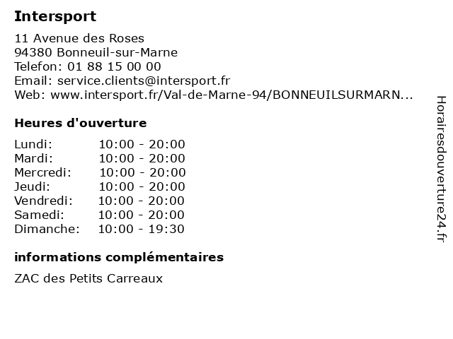 1 Intersport (Distance: 7,98 km) - Rue Monthéty, 77340 Pontault-Combault accessoires, articles, chaussures, intersport, loisirs, sport, vêtements, équipement 2 Intersport (Distance: 9,52 km) 13 Chemin du Marquis, 77170 Servon articles, chaussures, equipe, intersport, sports 3 Intersport (Distance: 10,23 km) 28 Avenue du General de Gaulle, 93541 Bagnolet accesoires, cafe, chausseres, enfants, homme, intersport, mode femmes, restaurant 4 Intersport (Distance: 15,19 km) 148 rue de Rivoli, 75001 Paris accessoires, intersport, magasins, sport, vetements 5 Intersport (Distance: 17,59 km) - Avenue du Général de Gaulle, 77090 Collegien accessoires, intersport, magasin, prêt à porter, running, sport 6 Intersport (Distance: 19,00 km) 2 Avenue de la Plesse, 91140 Villebon-sur-Yvette accessoires, intersport, magasins, sport, vetements |