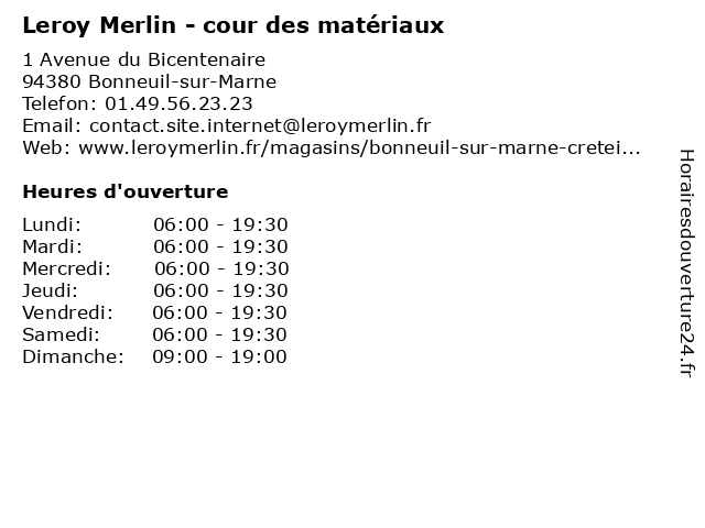 1 Leroy Merlin - cour des matériaux (Distance: 8,68 km) 52 Boulevard de Stalingrad, 94400 Vitry-sur-Seine cour, cuisine, decoration, des, leroy, matériaux, merlin, parquet, terrase jardin 2 Leroy Merlin - cour des matériaux (Distance: 12,65 km) 7 rue de Lisbonne, 93110 Rosny-sous-bois bricolage, cour, des, leroy, matériaux, merlin 3 Leroy Merlin - cour des matériaux (Distance: 13,27 km) - Boulevard du Segrais, 77185 Lognes bricolage, cour, des, leroy, matériaux, merlin 4 Leroy Merlin - cour des matériaux (Distance: 15,75 km) 1 avenue Guy Rabourdin, 77500 Chelles bricolage, cour, des, leroy, matériaux, merlin 5 Leroy Merlin - cour des matériaux (Distance: 16,43 km) 1 Rue Aulnaye Dracourt, 91300 Massy bricolage, cour, des, leroy, matériaux, merlin 6 Leroy Merlin - cour des matériaux (Distance: 18,86 km) - Allée Jean Coulon, 93190 Livry-Gargan bricolage, cour, des, leroy, matériaux, merlin |