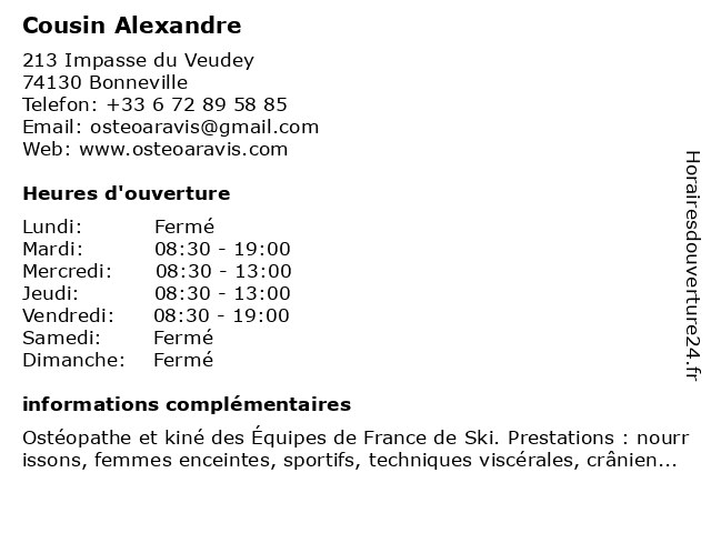 2 Alexandre Sage Immobilier (Distance: 7,95 km) 375 rue des Combattants d'Afn, 74800 La Roche Sur Foron achat, agence, alexandre, immobilier, location, sage, vente 3 Marmoux Alexandre Gerald (Distance: 9,38 km) Monsieur Alexandre Marmoux, 74800 La Roche Sur Foron alexandre, boucheries, gerald, marmoux, poissonneries 4 Dr Alexandre Cannelle - Médecin généraliste (Distance: 10,26 km) 30 Impasse de la santé, 74380 Nangy alexandre, cannelle, docteur, dr, generaliste, généraliste, medical, médecin, soin 5 Alexandre Brigatti - Ostéopathe (Distance: 10,84 km) 84 Résidence du Pont de Fillinges, 74250 Fillinges alexandre, brigatti, ostéo, ostéopathe, ostéopathes, soins 6 Aréas Assurances Troussel Alexandre Agent général (Distance: 11,99 km) 140 Impasse des contamines, 74930 Pers-Jussy agent, alexandre, aréas, assurances, général, troussel |