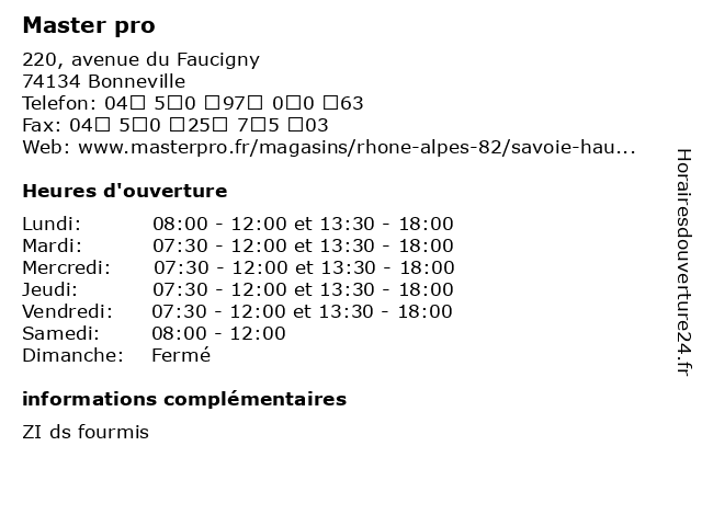 | Lundi | 08:00-12:00 et 13:30-18:00 |