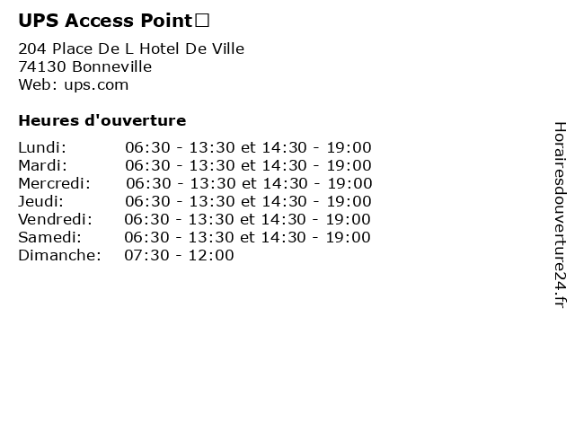 | Samedi | 06:30-13:30 et 14:30-19:00 |