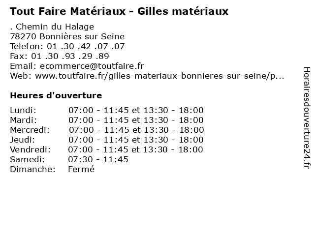 | Lundi | 07:00-11:45 et 13:30-18:00 |
