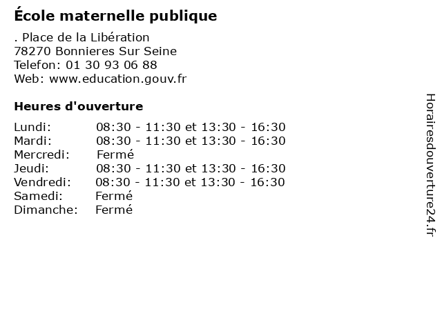 | Mardi | 08:30-11:30 et 13:30-16:30 |