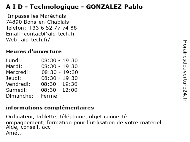 | Lundi | 08:30-19:30 |