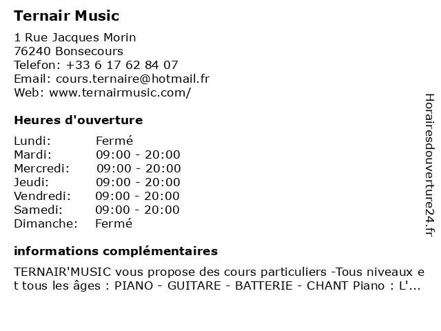 3 Live Music 27 (Distance: 43,56 km) 7B Côte de l'Église, 27550 Nassandres 27, live, location, matériel, music 4 Music Plus (Distance: 49,77 km) 13 Rue De La Republique, 76210 Bolbec art, loisirs, magasin d'instruments de musique, magasin de musique., music, musicplus, plus 5 New's music dance (Distance: 56,35 km) 19 Chemin des Paquerets, 27190 Nogent-le-Sec dance, music, new's |