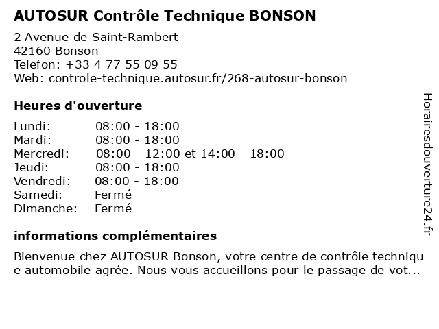Termes de recherche pour AUTOSUR Contrôle Technique BONSON:bonson, autosur, controle, technique |