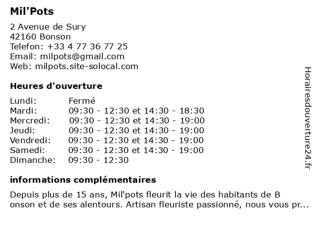Horaires d'ouverture |