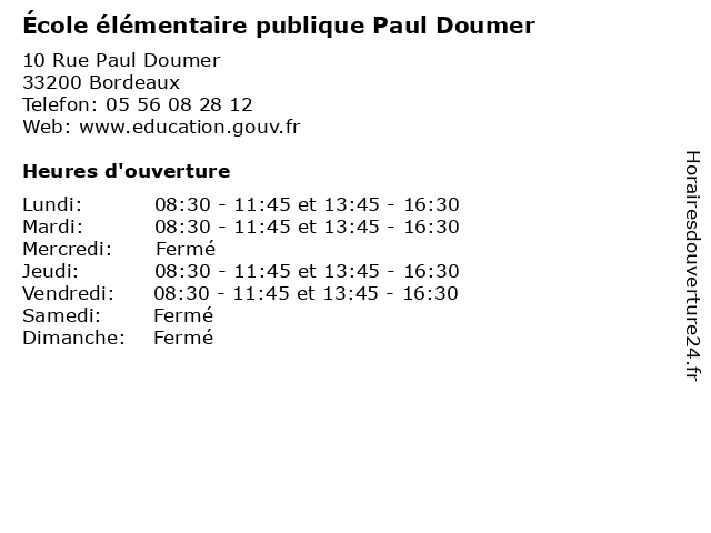 | Mardi | 08:30-11:45 et 13:45-16:30 |