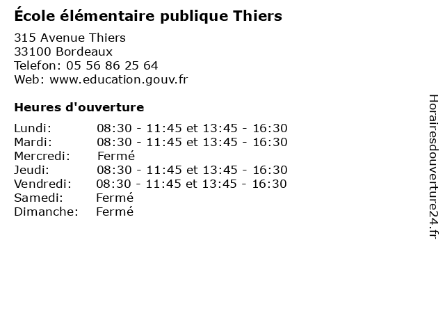 | Mardi | 08:30-11:45 et 13:45-16:30 |