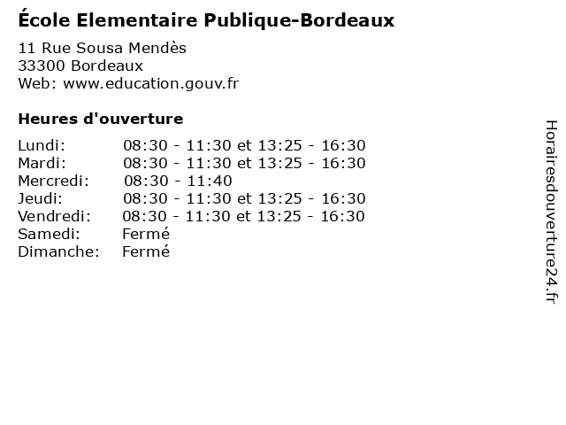 | Mardi | 08:30-11:30 et 13:25-16:30 |