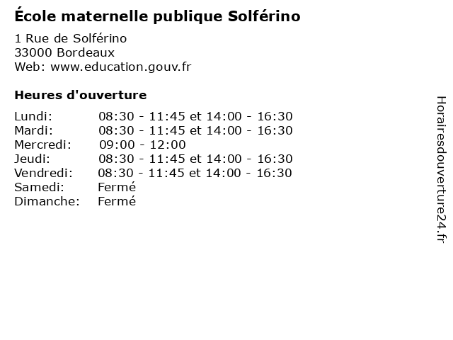 | Mardi | 08:30-11:45 et 14:00-16:30 |