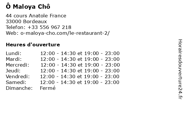| Mardi | 12:00-14:30 et 19:00-23:00 |