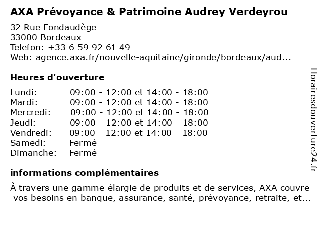 | Mardi | 09:00-12:00 et 14:00-18:00 |