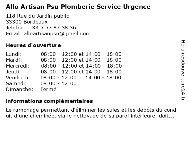 | Mardi | 08:00-12:00 et 14:00-18:00 |