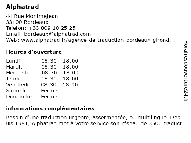 6 Alphatrad (Distance: 0,00 km)44 Rue Montmejean, 33100 Bordeaux alphatrad |