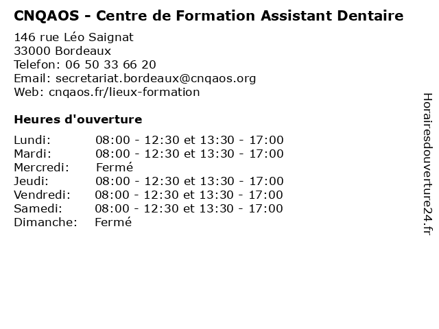 | Samedi | 08:00-12:30 et 13:30-17:00 |