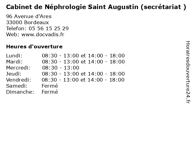 Termes de recherche pour Cabinet de Néphrologie Saint Augustin (secrétariat ):de, saint, cabinet, augustin, santé, secretariat, docteur, médecins, consultation, néphrologie |