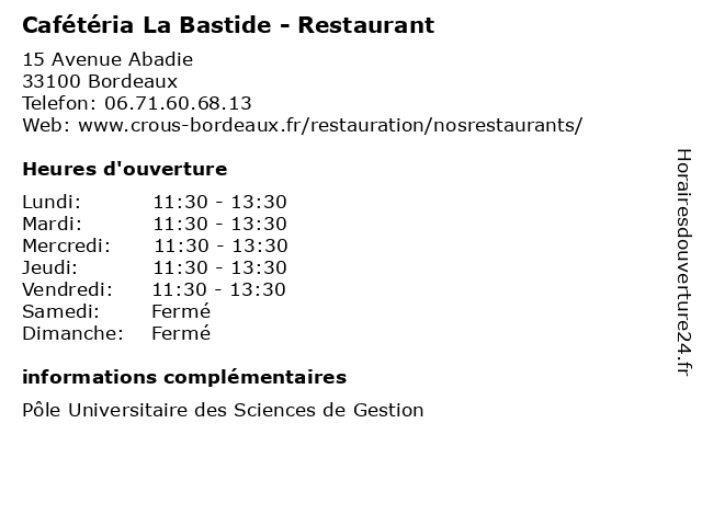 Termes de recherche pour Cafétéria La Bastide - Restaurant:restaurant, la, bastide, cafétéria, universitaire, campus |