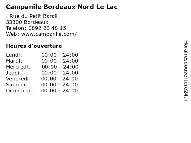 | Dimanche | 00:00-24:00 |