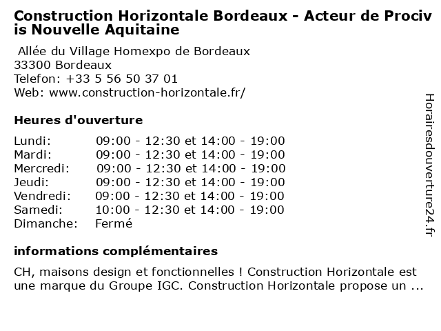 | Samedi | 10:00-12:30 et 14:00-19:00 |