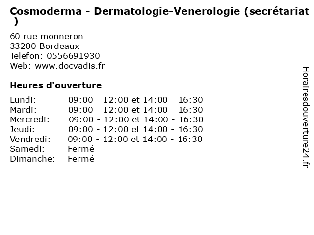 Termes de recherche pour Cosmoderma - Dermatologie-Venerologie (secrétariat ):santé, secretariat, docteur, consultation, dermatologie, venerologie, cosmoderma |