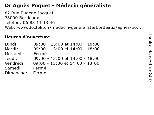 | Jeudi | 09:00-13:00 et 14:00-18:00 |