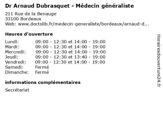 | Mercredi | 09:00-12:30 et 14:00-19:00 |