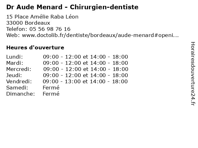 | Lundi | 09:00-12:00 et 14:00-18:00 |