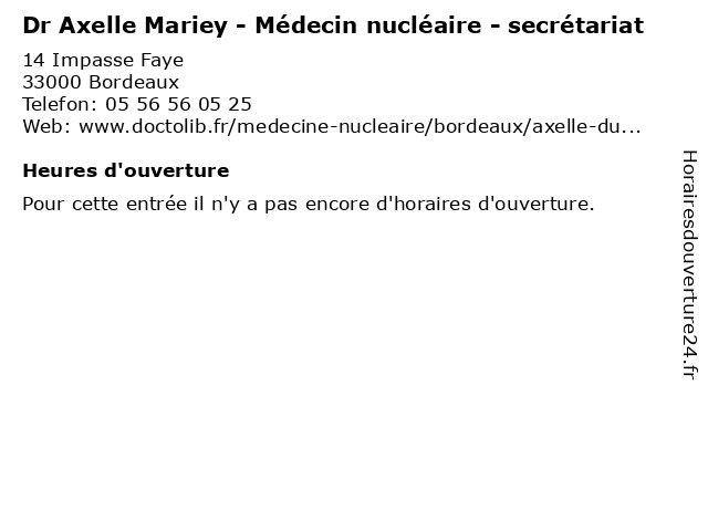 | Appeler Dr Axelle Mariey - Médecin nucléaire - secrétariat | |