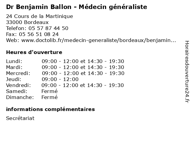 | Mercredi | 09:00-12:00 et 14:30-19:30 |