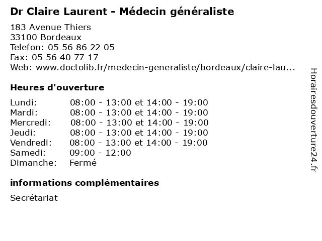 | Lundi | 08:00-13:00 et 14:00-19:00 |