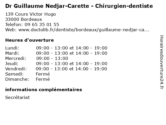 | Mardi | 09:00-13:00 et 14:00-19:00 |