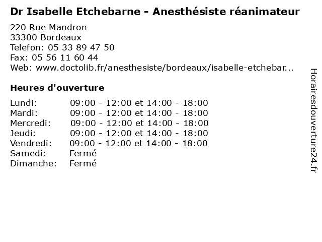 | Lundi | 09:00-12:00 et 14:00-18:00 |