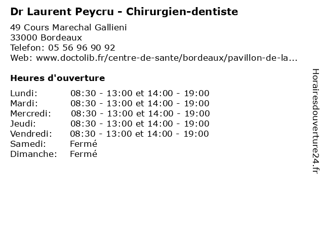 | Lundi | 08:30-13:00 et 14:00-19:00 |