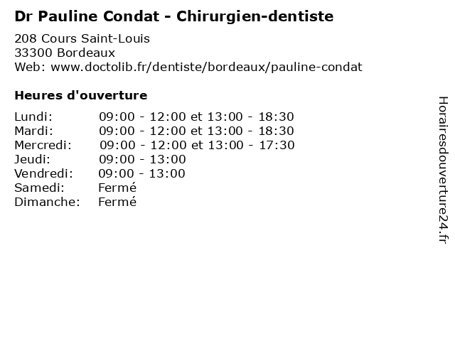 | Lundi | 09:00-12:00 et 13:00-18:30 |