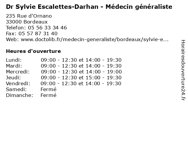 | Lundi | 09:00-12:30 et 14:00-19:30 |